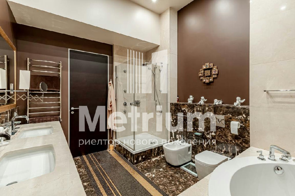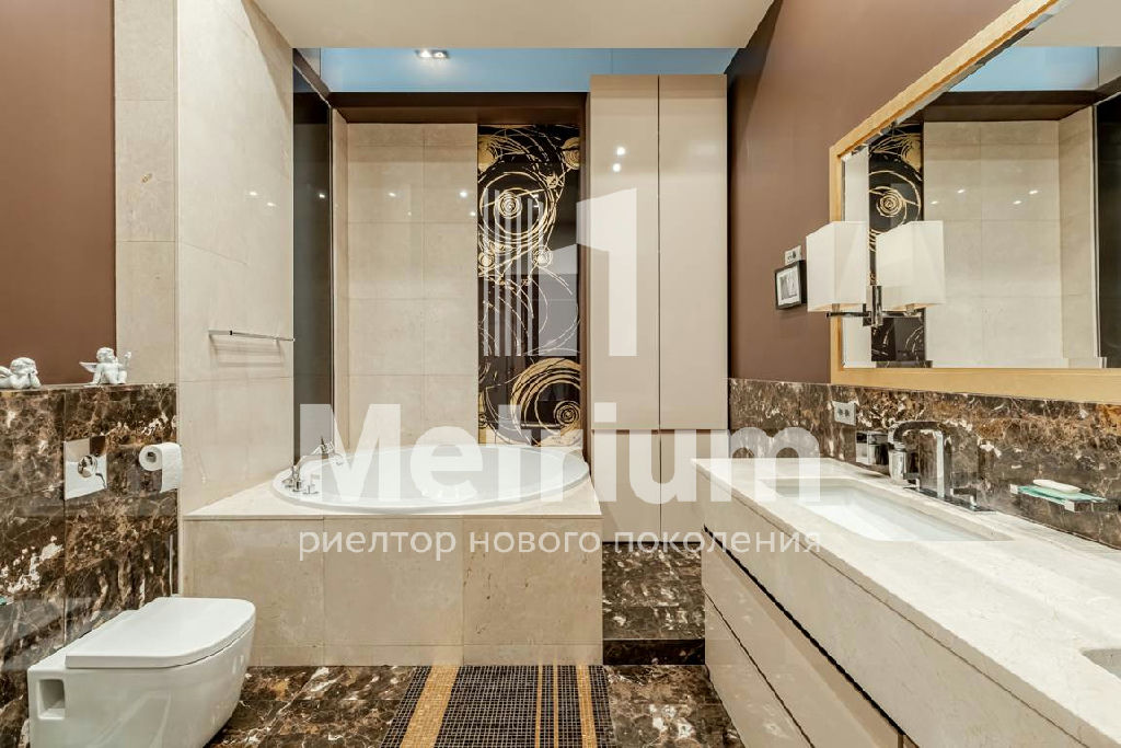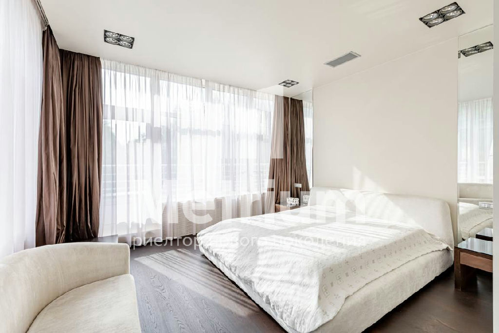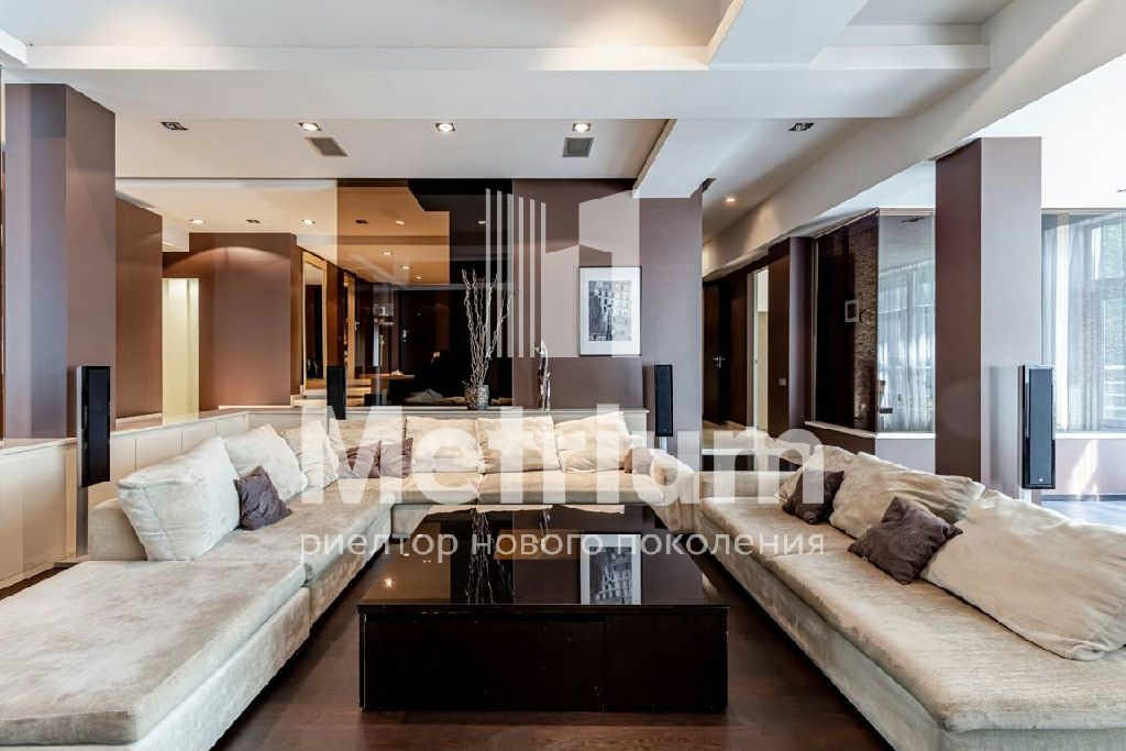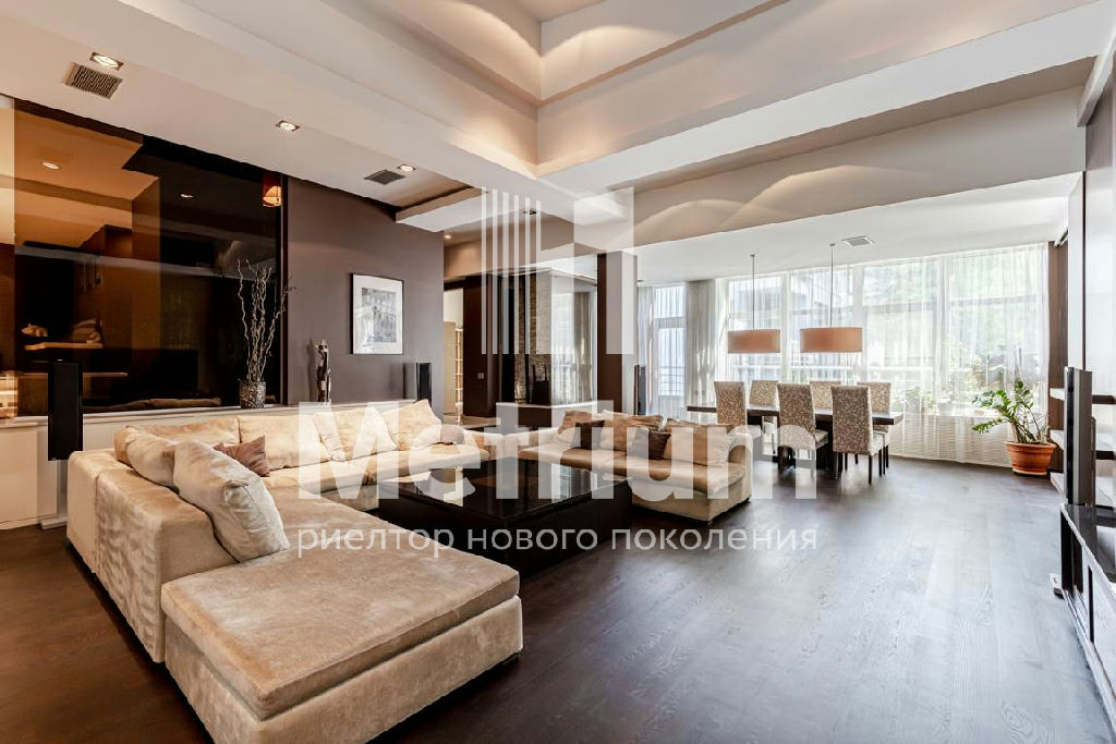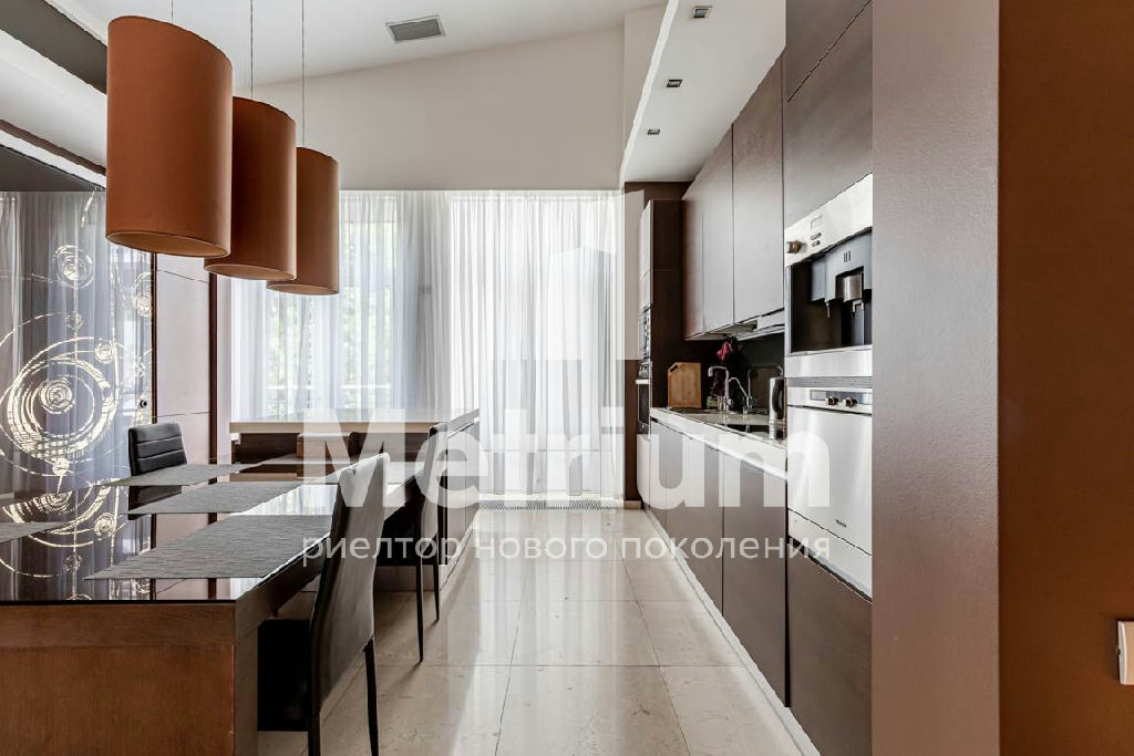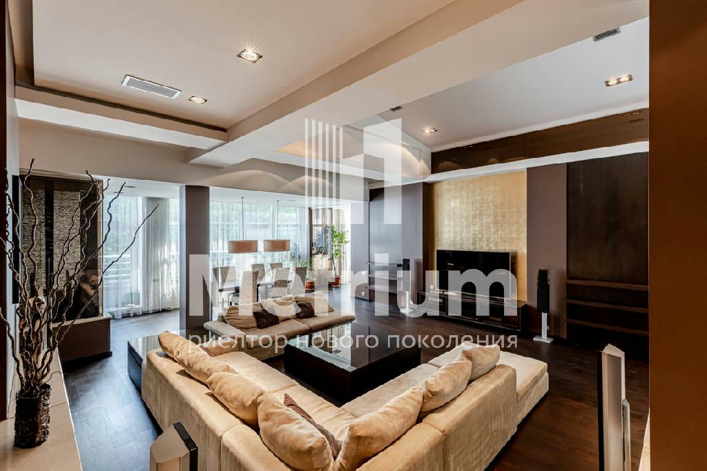 Интерьер квартиры выполнен по авторскому дизайн-проекту с использованием качественных натуральных материалов. Квартира полностью укомплектована мебелью, оборудована современной бытовой техникой и готова к проживанию. Функциональная планировка включает в себя кухню, гостиную, столовую, 3 спальни с ванными комнатами, кабинет, комнату отдыха, постирочную, гардеробные, 2 террасы.