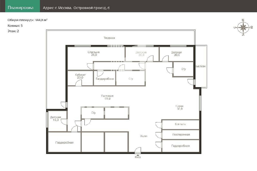 Общая: 344,8 м2